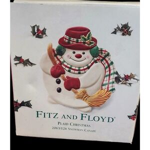 Fitz and Floyd PLAID CHRISTMAS SNOWMAN CANAPE PLATE 2001