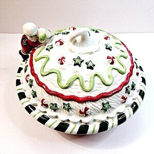 Fitz and Floyd Santa's Kitchen Pie Keeper Ceramic Christmas New In Original Box
