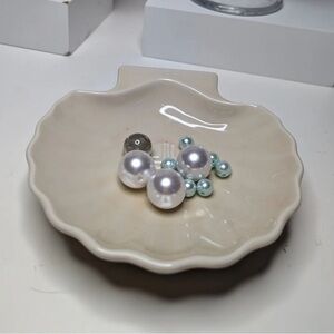 Fitz and Floyd Shell Jewelry Holder Dish, Made in Japan, 1970’s, Beige, 5” x 5”.