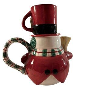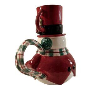 Fitz and Floyd Snack Therapy Snowman Teapot Cup Cocoa For One Christmas 28 oz