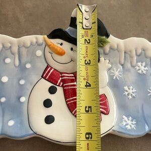 Fitz And Floyd Snack Therapy Ceramic Snowman Dish Christmas 6” X 12”
