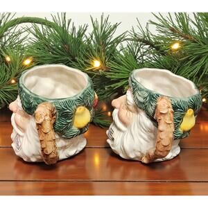 Fitz and Floyd Woodland Santa Collection Pair of Santa Mugs 1991 Vintage