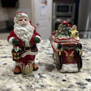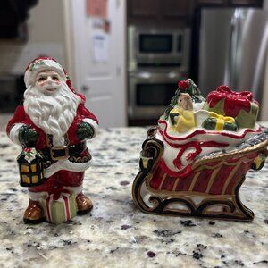 Fitz and Floyd Yuletide Traditions Salt & Pepper Shaker Set Santa and Sleigh