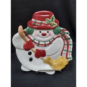 Fitz and Floyd plaid Christmas Snowman Canapé plate New in Box #2063/126