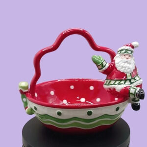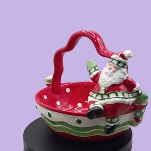 Fitz and floyd ceramic christmas basket with santa claus