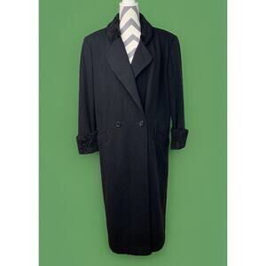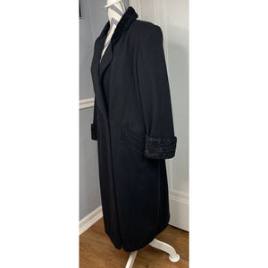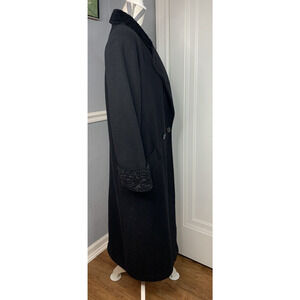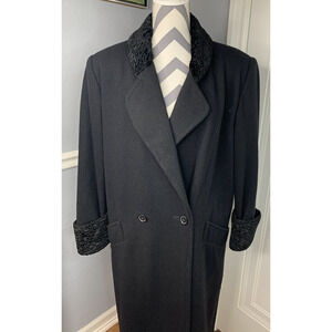 Fitz-Wright Women’s 14 Black Wool Blend Long Overcoat w/ Faux Fur Collar