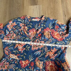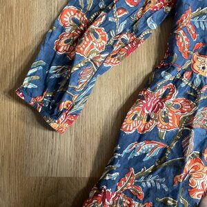 Fitzroy & Willa Marti Tiered Dress M medium blue floral block print India