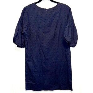 Fitzroy & Willa XS Dress Navy Blue Eyelet Puff Sleeve Preppy Classy Minimal Corp