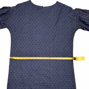Fitzroy & Willa XS Dress Navy Blue Eyelet Puff Sleeve Preppy Classy Minimal Corp