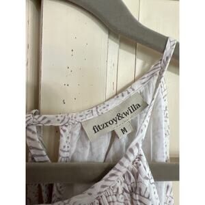 Fitzroy & Willa size medium cotton maxi dress in excellent condition. White with a light light purple design. Measures 22” from armpit to armpit. 26” across the waist and it is 54” long. It has pockets! It is lined with cotton also.