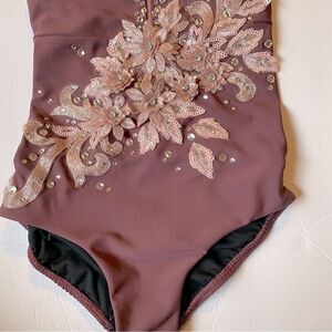 Five 5 Dance costume solo mauve mesh leotard custom rhinestone YXL XLC child