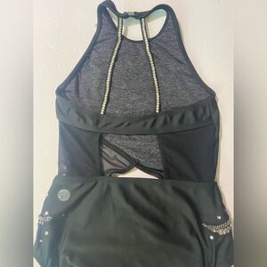 Five 5 Dance costume solo custom black leotard rhinestoned PA petite Small adult