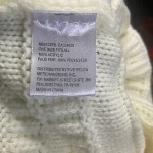 Five Below Beanie Hat One Stretch Pom Pom White
