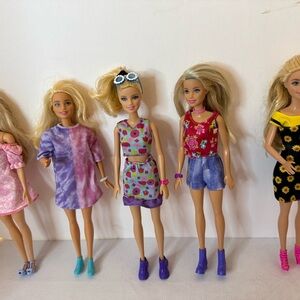 Five Blonde Barbies with all NEW outfits and accessories and storage bags!