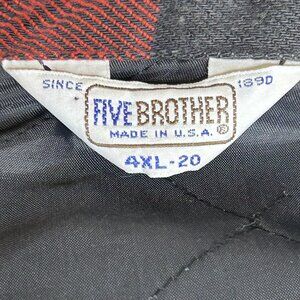 Five Brother Shirt Jacket Mens 4XL Red Black Buffalo Plaid Quilted Flannel Workwear USA