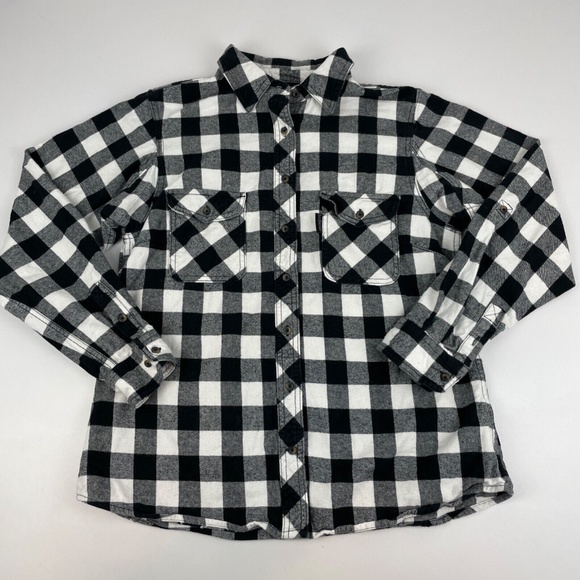 Five Brother Women's Size L Flannel Shirt Plaid Black Plaid Reinforced Bust