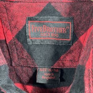Five Brothers Flannel Shirt Pearl Snap Mens XL Tall Red Black Buffalo Plaid