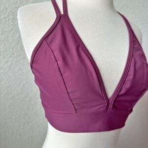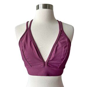 Five Dancewear Berry Nikita Strappy Sports Bra. Dance sports bra with strappy detail back. Deep v-front. Nylon/spandex blend.