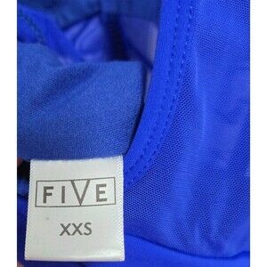 The product is a royal blue leotard by the brand Five the label, in adult XXS size. Designed for girls, this dancewear item is perfect for Broadway or other dance performances. The bright blue color adds a vibrant touch to the traditional dance attire, making it a stylish and functional choice for young dancers.