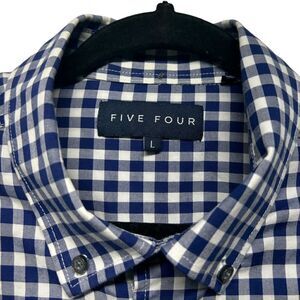 Five Four Blue White Plaid Long Sleeve Button Down Dress Shirt Collar Casual Formal