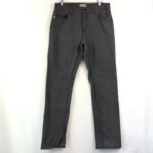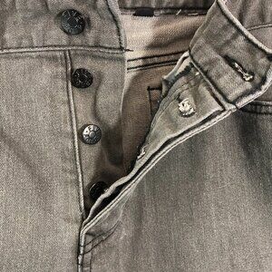 This pair of jeans have measurements of 17 1/2 inches at the waist, a rise of 11 inches and the inseam is 33 1/2 inches. They are in very good used condition.