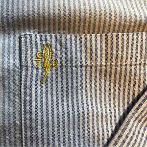 Five Four Mark McNairy Blue and White Pin Stripe Button Down Shirt. Sz Large