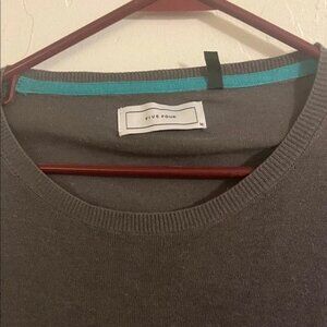 Green long sleeve tee with crew neck. Features black stripe on sleeve.