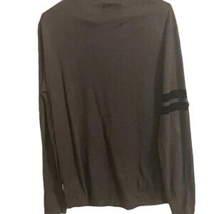 Green long sleeve tee with crew neck. Features black stripe on sleeve.