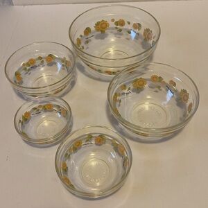 Five Imperial Glass Flower Dute Sunflower Themed Nesting Bowls