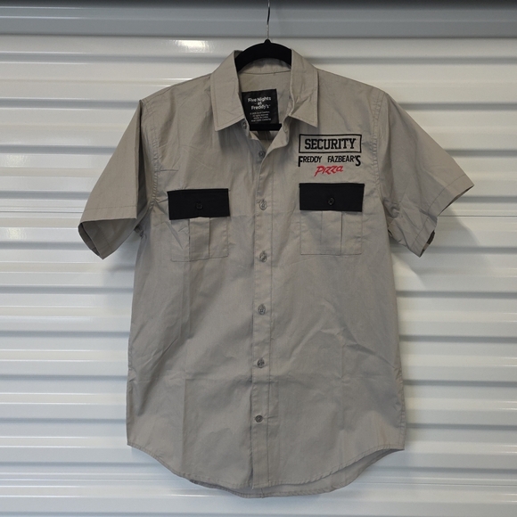 Five Nights At Freddy's Security Fazbears Pizza Woven Button-Up Medium (Z)