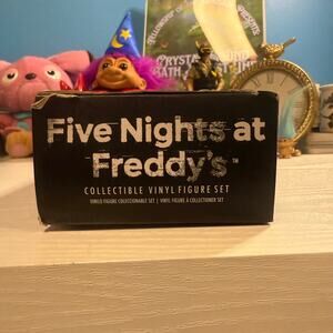 New in box 2016 Funko Five Nights at Freddy’s Collectible Vinyl Figure Set. Includes Freddy, Bonnie, Springtrap, and Balloon Boy. Box shows minor shelf wear, dents, and light scuffs from storage but figures remain untouched inside factory packaging. Great for FNAF collectors, horror fans, or display. See photos for details.