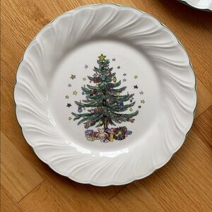 Five Nikko Happy Holidays 10.5 inches wide dinner plates.
