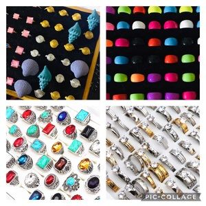 Ring bundle five piece random pieces, look at pics to see what the rings can look like, you can message me with preferred sizes, otherwise sizes range from 4-12.
