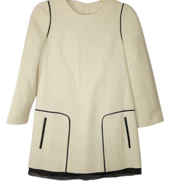 Tweed Fabrication with Black Piping and Chiffon Trimmed Hem, Mock Pockets, Hidden Zip Back Closure, Mini Length Versatile Business Attire as Mini Dress or Tunic- Lined