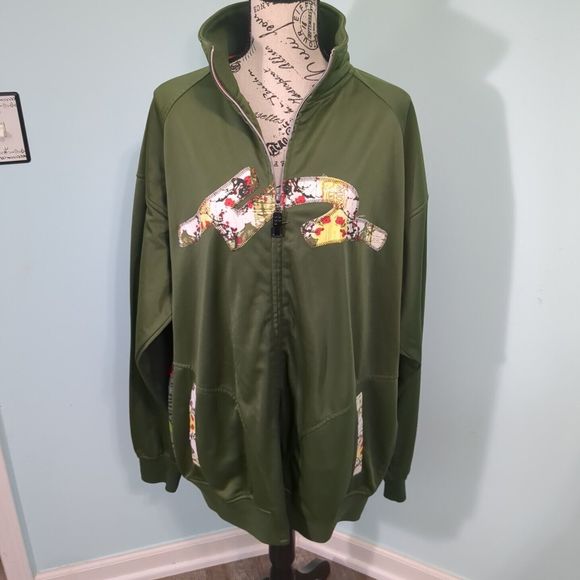 Five Pointz Cherry Blossom Sakura Green Zip Up Long Sleeve Jacket Men's Size 3xl