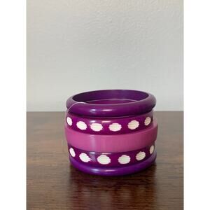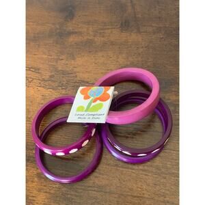 Five Purple Wood Bangle Bracelets Form a Cuff Bracelet New
