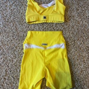 Yellow and white set from five dancewear. Top is XS adult and bottoms are also XS adult.