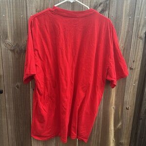 Show off your style with this vibrant red graphic t-shirt. Perfect for fans, this shirt combines comfort with a bold design. Missing size tag fits like an extra large.