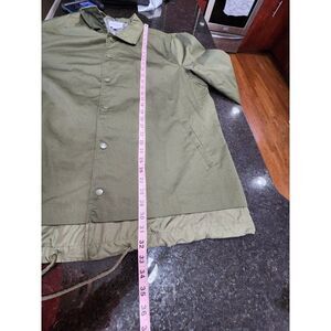 Five Four, Olive Green Men's 2XL Button Up Lightweight Jacket, NWOT. Beautiful coat, never worn, has no tags. See photos for measurements. All measurements are taken while garment is laying flat.