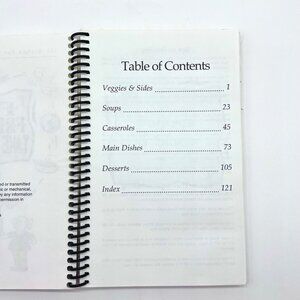 • Contents: Veggies & sides, soups, casseroles, main dishes, desserts