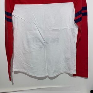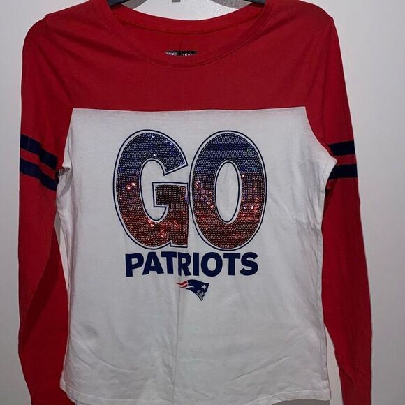 NFL Team Apparel Women's Red & White Colorblock Sequined Go Patriots New England Tee Sz 18