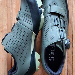 Like new all terrain Fizik cycling shoes, size EU 39.5 in military green. Worn less than 50 miles, no scuffs on exterior. Clip in hardware for pedals will be removed prior to shipping.