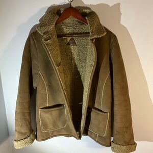 Fjall Sherpa Jacket, Small. Brown Pockets. Faux Suede, Shearling. Thick and warm