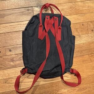 Classic Fjallraven backpack. Black body with bold red straps. Ideal for daily adventures. Well-loved but lots of life left!