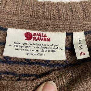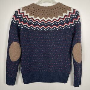 Fjallraven Fair Isle Sweater Women’s XS Navy Birdseye Ovik Nordic Elbow Patches
