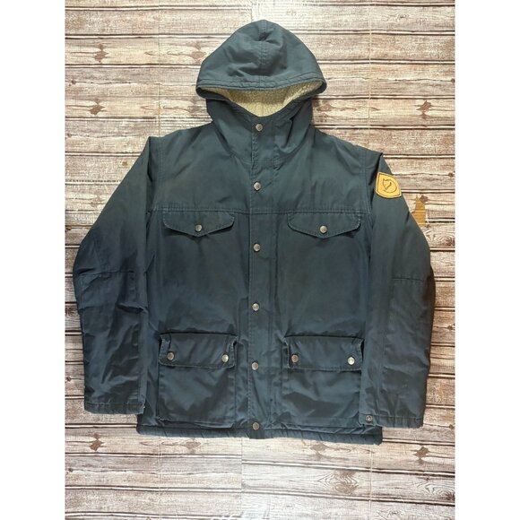 Fjallraven Greenland Winter Wax sherpa lined hooded Parka size Small color blue