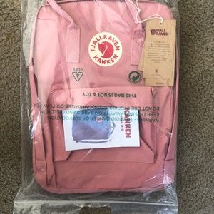 Brand new Kanken backpack with tag on it, 16 L of storage space for everything you need and some things you don't. Measures 14.9" (38 cm) x 10.6" (27 cm) x 5.1" (13 cm). Weighs 0.7 lb.
