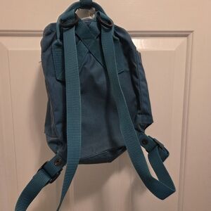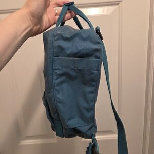 Fjallraven Kanken mini backpack in a deep teal green. Perfect for a child or for use as a purse/day bag. Interior ID label has been written on but this does not affect use.