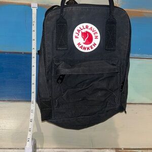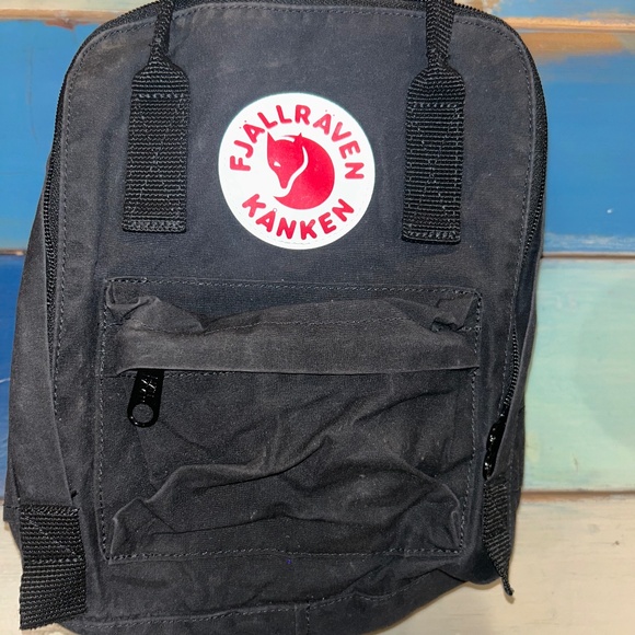Fjallraven Kanken Mini Backpack in Black, scaled-down version of the Kånken backpack with long shoulder straps that can be adjusted to fit both children and adults. Small front pocket, in great condition