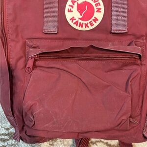 Classic Fjallraven Kånken backpack in deep red. Durable and stylish. Ideal for daily adventures.
